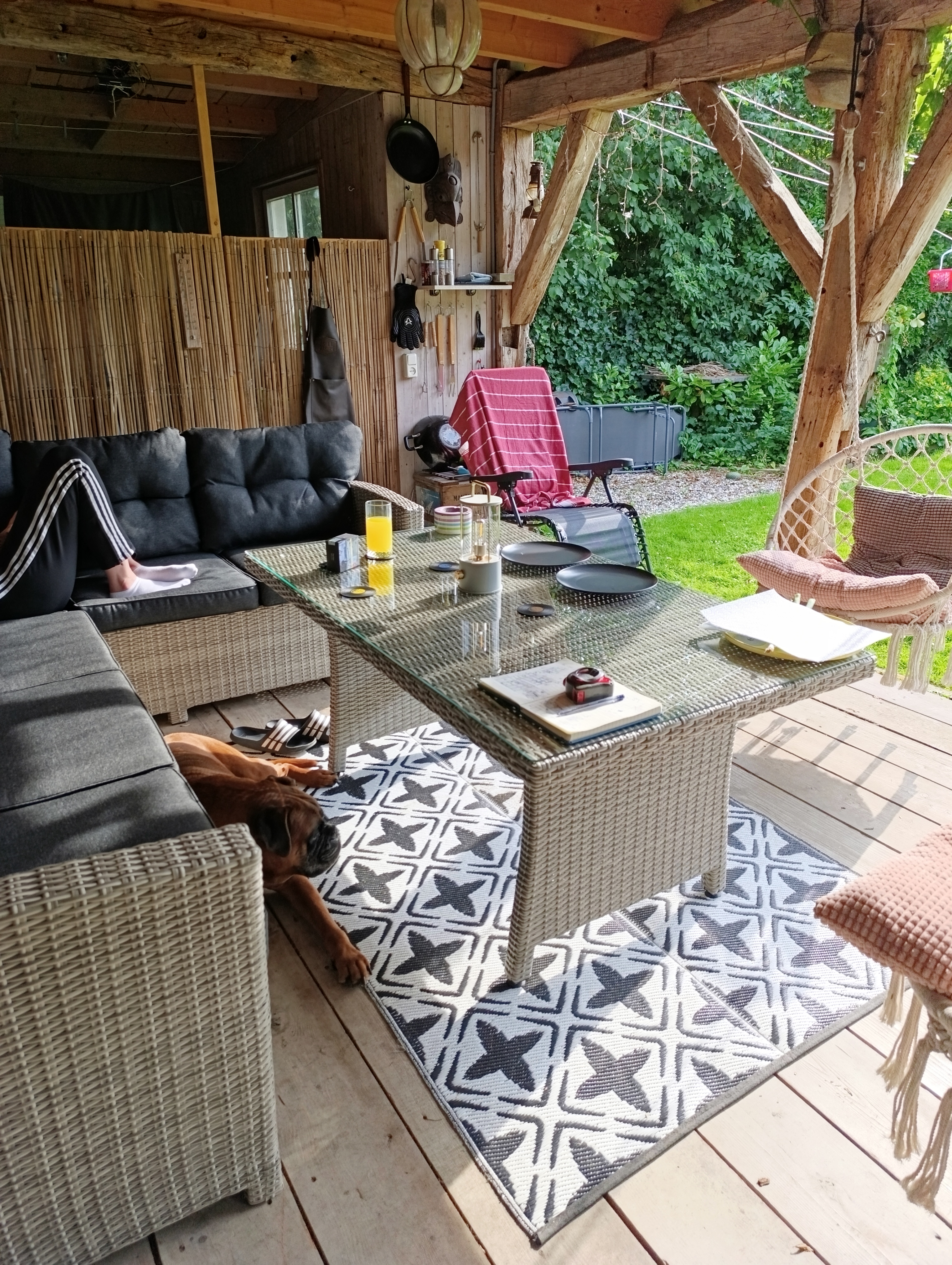 De set bestaat uit een ruime hoekbank met een afmeting van 260 x 200 cm en een diningtafel met glasplaat van 150 x 80 cm. De kussens zijn waterafstotend, dus een kleine regenbui is geen probleem. Maar laat de kussens niet kletsnat regenen! Berg de kussens daarom op in een box of tas en dek de set af met een hoes. Op deze manier kun je extra lang van jouw Casablanca loungeset genieten!