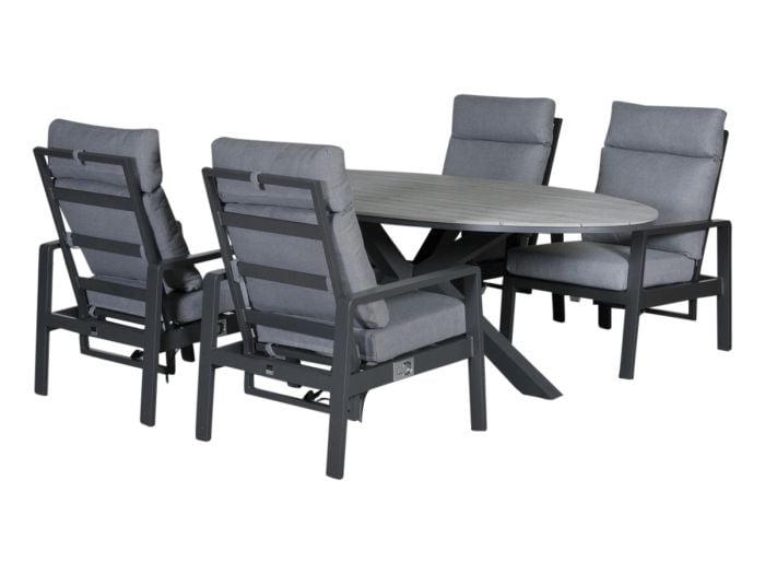 De Outdoor Feelings Nice Edson 220 diningset - Grey Teak is een comfortabele en strakke tuinset met verstelbare stoelen.