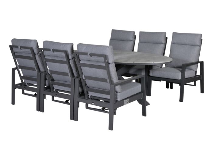 De Outdoor Feelings Nice Edson 220 XL diningset - Grey Teak is een comfortabele en strakke tuinset met verstelbare stoelen.