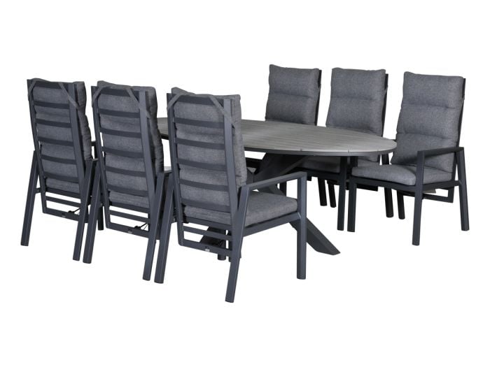 De Outdoor Feelings Sala Edson 220 diningset - Grey Teak is een vlotte en strakke tuinset met verstelbare stoelen.