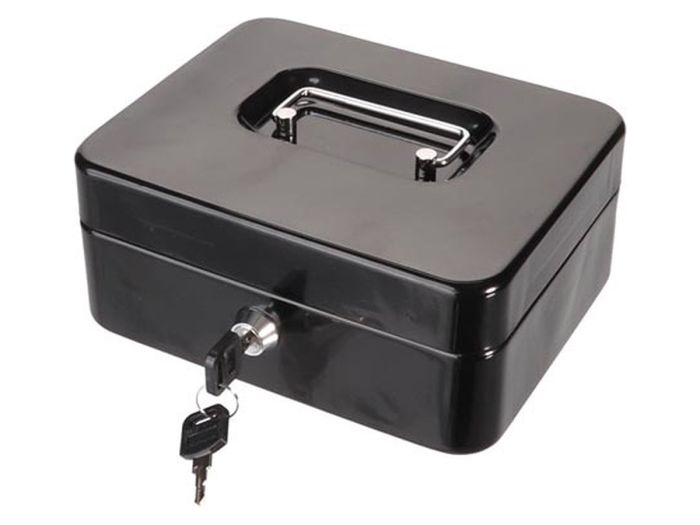 Het zwarte metalen geldkistje is een handig en betrouwbaar opbergmiddel voor jouw waardevolle bezittingen. Dankzij het compacte formaat (16 x 20 x 9 cm) past hij perfect in een lade, kast of op een plank. In de uitneembare inzet met 5 compartimenten kan je het (klein)geld gemakkelijk organiseren en houdt je het overzicht. Eventueel kun je het geldkistje ook gebruiken voor het opbergen van sleutels of sieraden. Het geldkistje met cilinderslot wordt geleverd met 2 sleutels voor als je 1 sleuteltje kwijt raakt.
