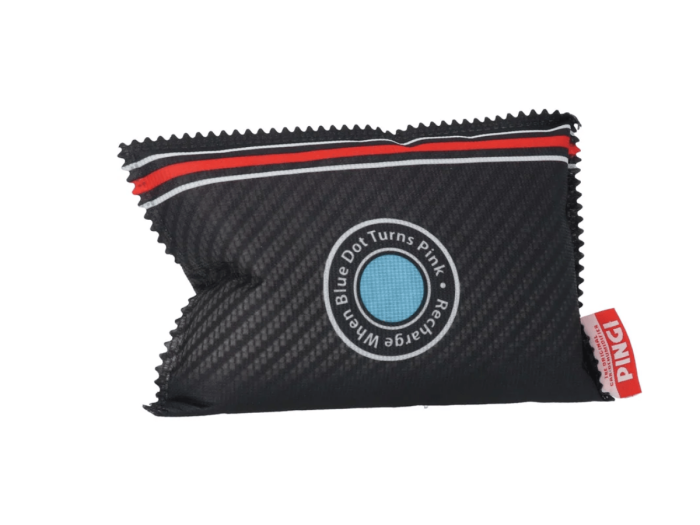 Het product absorbeert het hinderlijke vocht uit de naaste omgeving en voorkomt condens. Bij verzadiging kleurt de unieke Pingi indicator van blauw naar roze, waarna het product kan worden herladen in de magnetron. Enkele minuten in de magnetron op 600 watt en het opgenomen vocht zal op hygiënische wijze verdampen. Dit is een vochtopnemer die doet wat je van een vochtopnemer mag verwachten.