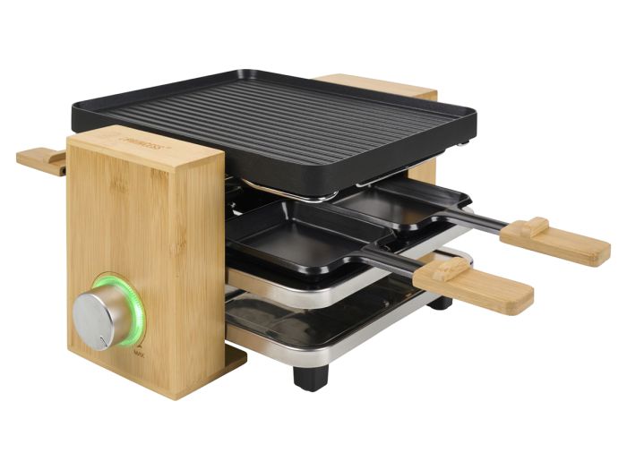 - Door het bakoppervlak van 21 x 23 cm biedt de raclette genoeg ruimte om met 4 personen heerlijk te dineren