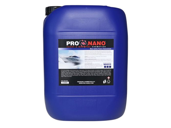 ProNano Blue Active Foam is een zeer efficiente contactloze boat cleaner. Het product is geschikt voor het contactloos reinigen van o.a. romp, dek, motorruimte en alle andere delen. ProNano Blue Active Foam heeft een diep reinigende werking en laat geen strepen achter. Het product is ontwikkeld op basis van de gepatenteerde Nano Technologie.