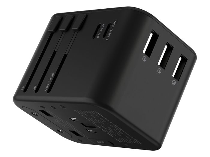 Deze wereldstekker telt maar liefst 5 USB-poorten, 3x USB-A en 2x USB-C welke extra snel kunnen laden. Daarnaast heb je ook nog een normaal stroompunt voor andere apparaten.