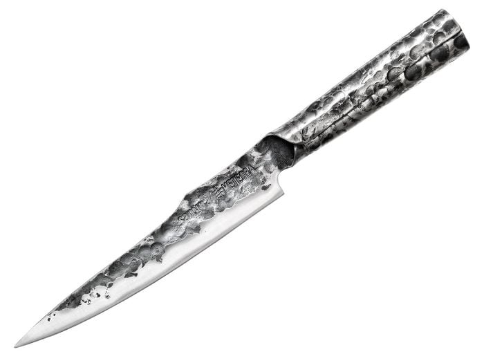 Het Meteora is een esthetisch en robuust afgewerkte serie. Het Utility knife is een all-round mes geschikt voor bijvoorbeeld groenten, vlees en vis. Het lemmet is van niet roestvrij AUS-10 en is 17cm lang. Het gehele mes is gesmeed uit één stuk AUS-10 staal. Deze staalsoort staat bekend om zijn hardheid van 60HRC en is daardoor heel scherp te slijpen en behoudt deze scherpte ook nog eens erg lang.
