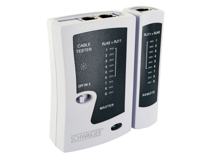 De Schwaiger netwerkkabel tester maakt het mogelijk om de kabels van je netwerk te testen op functionaliteit. De tester bestaat uit een remote unite met elk een RJ45 en een RJ11 aansluiting.