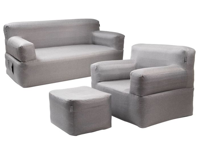 Deze productenset bestaat uit de drie artikelen uit de serie: de opblaasbare bank, de opblaasbare tweezitsbank en de opblaasbare kruk. Een onverslaanbaar team om comfortabel te zitten en te ontspannen, thuis of op de camping.
