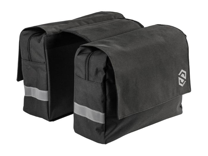 Degelijke traditionele fietstassen voor op de bagagedrager, van stevig 600D PVC polyester materiaal. De zwarte tassen zijn voorzien van een reflecterende band.De tassen zijn afzonderlijk af te sluiten met een rits. - Afmetingen 35 x 27 x 12 cm - inhoud 22 liter.