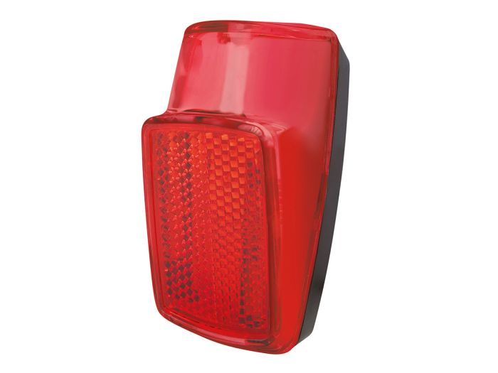 Achterlicht op batterijen, voor bevestiging aan het spatbord. 1 rood LED licht, de AAA-batterijen zijn inbegrepen. Handmatig in- en uit te schakelen, vast licht stand.