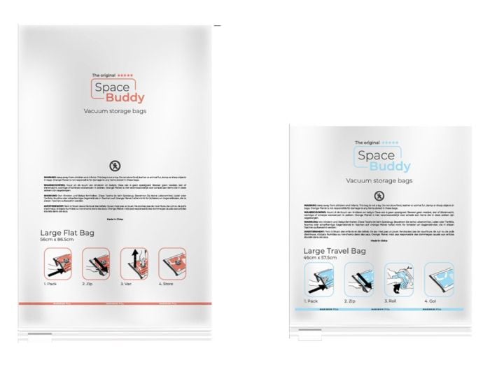 Elke Space Buddy vacuümzak is gemaakt van hoogwaardige, duurzame materialen om langdurige prestaties te garanderen. De zakken zijn voorzien van een speciale ritssluiting en een uniek ventiel waarmee je de overtollige lucht eenvoudig kunt verwijderen. Door te rollen of door een standaard stofzuiger te gebruiken, kun je de zakken comprimeren, waardoor het volume tot 75% wordt verminderd.