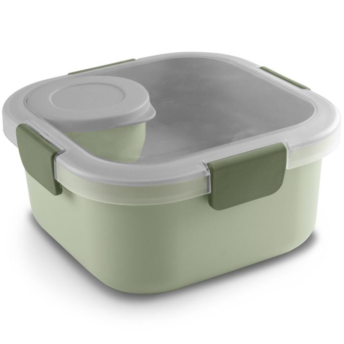 Gebruik hem bijvoorbeeld als saladebak, broodtrommel of voor het opwarmen van je warme maaltijd waarbij je verschillende ingrediënten apart kunt bewaren. Je dressing of pijnboompitjes in het mini-bakje en de tomaatjes en komkommers in de tray, de sla onderin. Het traytje is tevens te gebruiken als bordje.