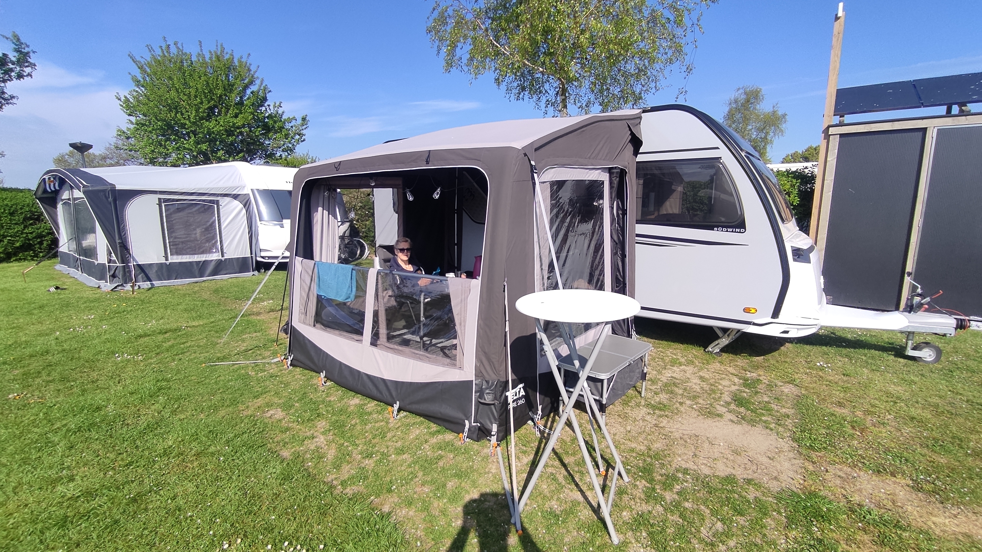 De Telta Pure 260 is een universele en opblaasbare voortent die zowel op caravans als campers past. Bevestig je de Pure 260 aan de caravan, dan moet het rechte stuk van de tentrail tenminste 260 cm lang zijn. Bevestig je de voortent aan de luifel van je camper, dan moet deze ten minste 300 cm lang zijn.