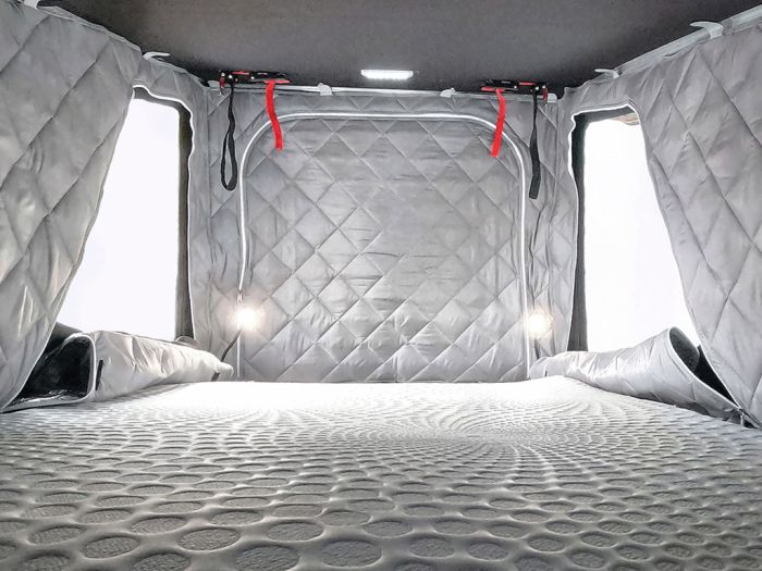 Een op maat gemaakte binnenisolatie voor het hefdak van je Dreamer D43 UP (vanaf 09/2020). Zo kun jij genieten van extra comfort tijdens koude nachten en warme zomerdagen, terwijl je camper een knusse, cocoon-achtige sfeer krijgt.