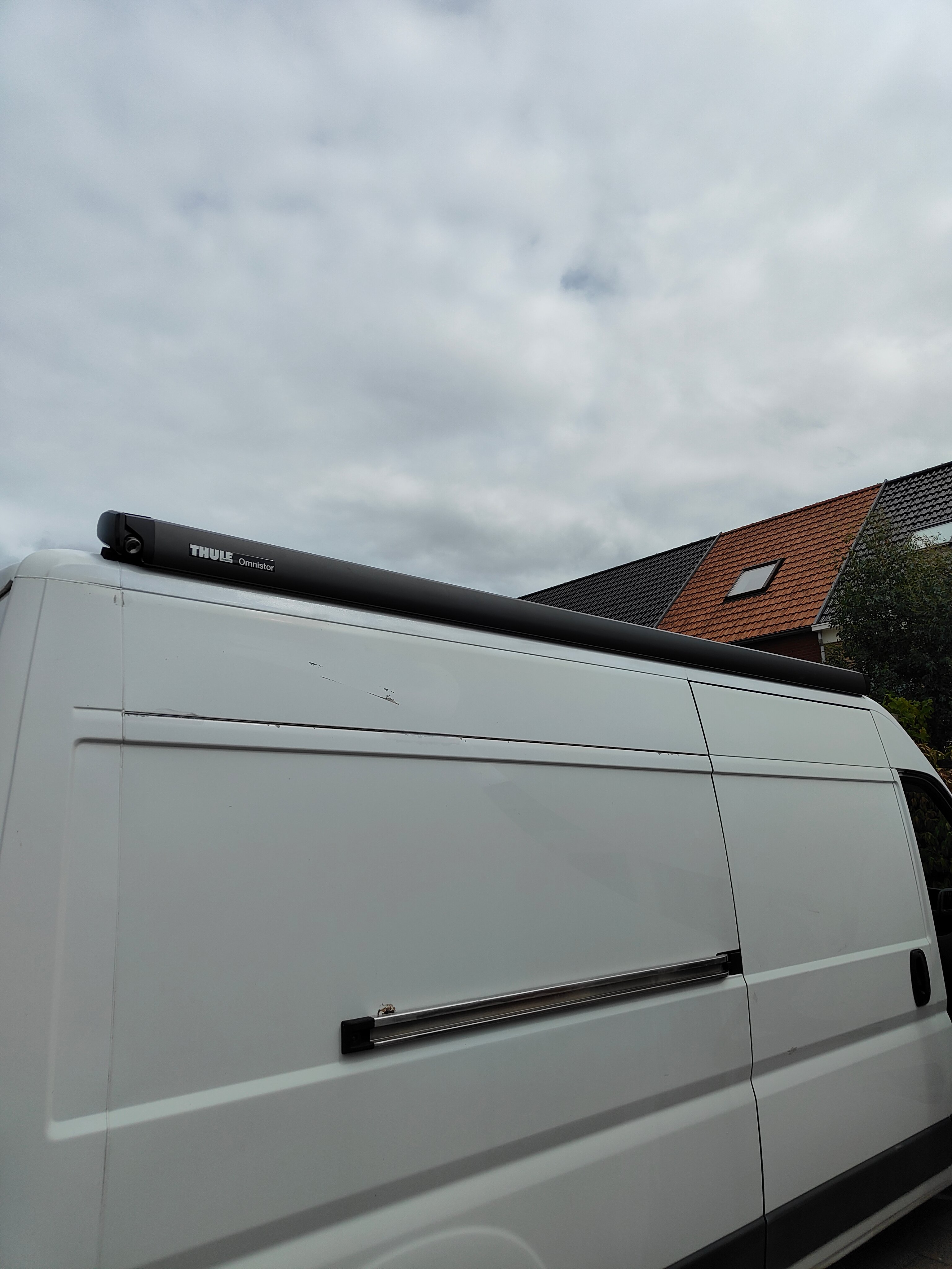 De Thule Omnistor 6300 heeft een uitval tot 250 cm en is maximaal 500 cm lang. Vanaf lengte 375 cm beschikt de luifel over extra spanarmen, voor een betere doekspanning. Leverbaar in de doekkleur Mystic Grey.