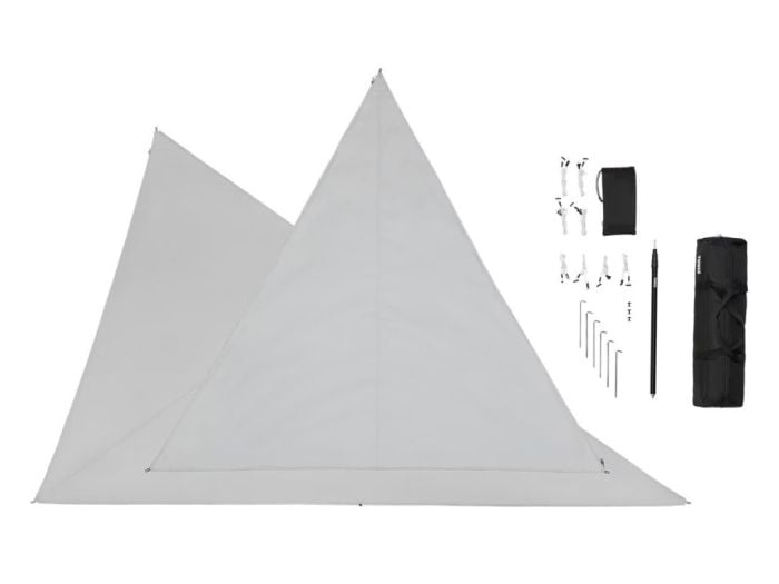 - Snel op te zetten en in te pakken; je schuift de panelen eenvoudig in de voorlijst van de Thule luifel