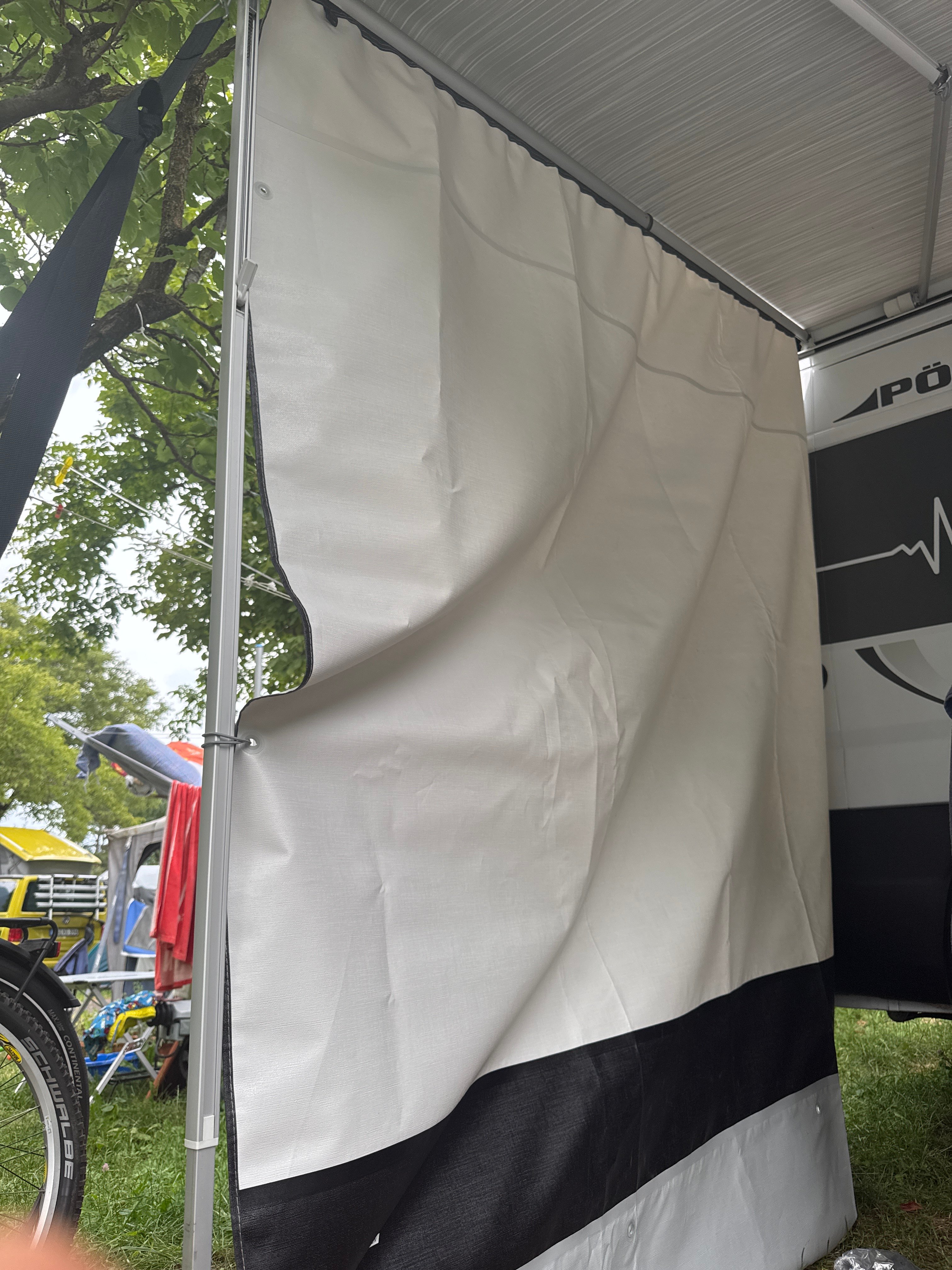 Dit is de manier waarop de achterkant van de zijwand tegen de camper- of caravanwand gemonteerd zit.