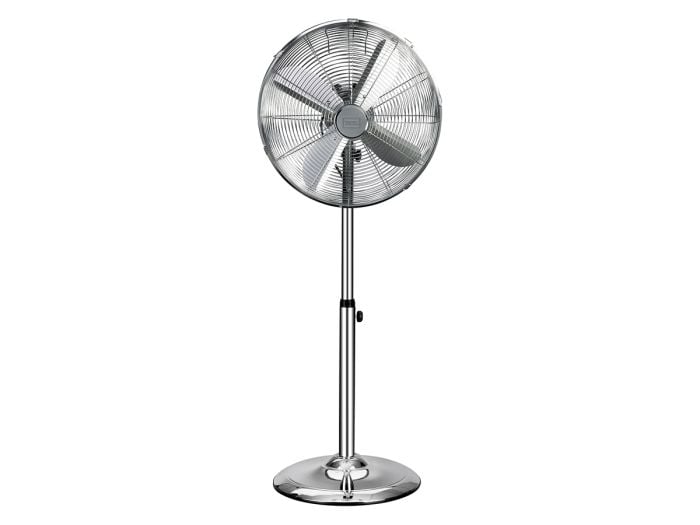 Deze Retro Statiefventilator 99385 heeft een metalen retro-look, ook wel een vintage-look genoemd. Het verchroomde design maakt deze vloerventilator geschikt voor diverse interieurs.
