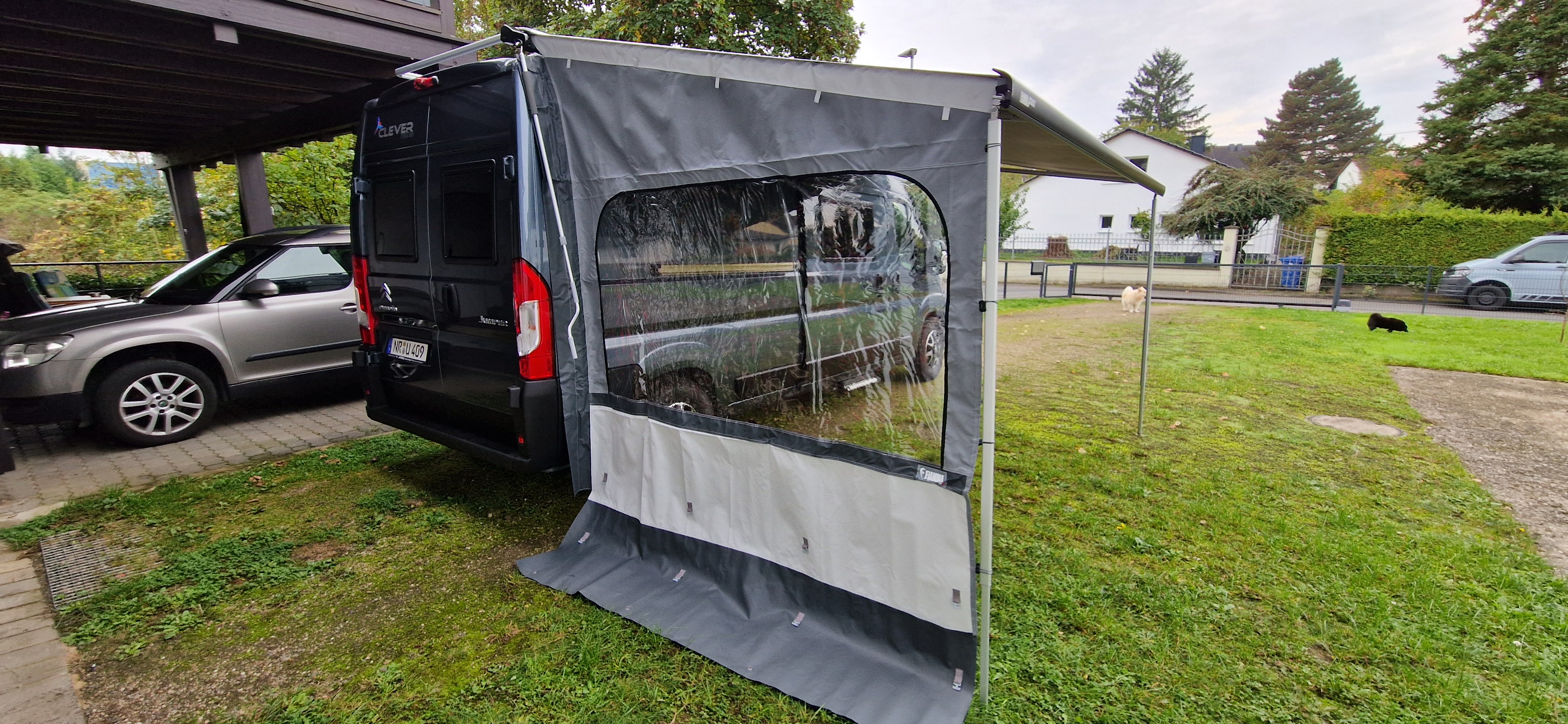Dit is de manier waarop de achterkant van de zijwand tegen de camper- of caravanwand gemonteerd zit.