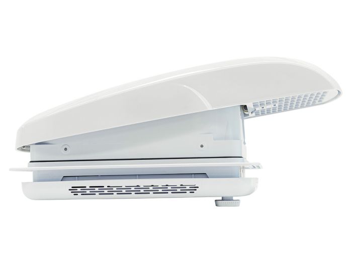 Ontdek de Obelink Panorama Fan Plus, het gemotoriseerde dakluik dat onder alle weersomstandigheden functioneel blijft, zelfs tijdens het rijden of bij slecht weer. Gemaakt van hoogwaardige materialen en met een modern design, zorgt de unieke koepel met luchtinlaat ervoor dat je camper goed geventileerd blijft zonder water binnen te laten.