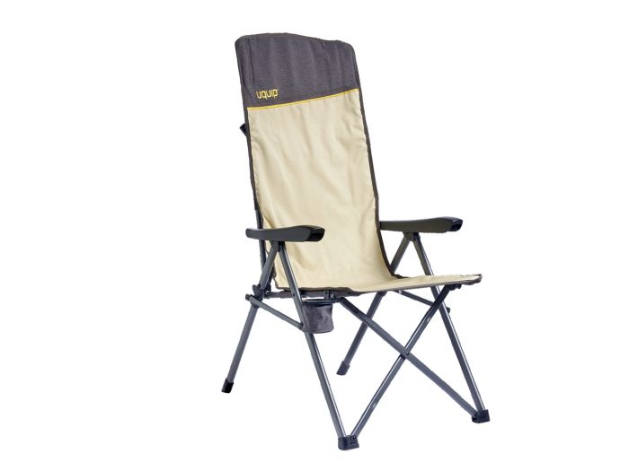 JUSTY XL is een bijzonder comfortabele klapstoel. De rugleuning is extra hoog en in drie standen verstelbaar. Daarnaast is er een praktische bidonhouder. De stevige stalen palen en het hoogwaardige rip-stop polyester maken het hoge draagvermogen van 120 kg mogelijk.
