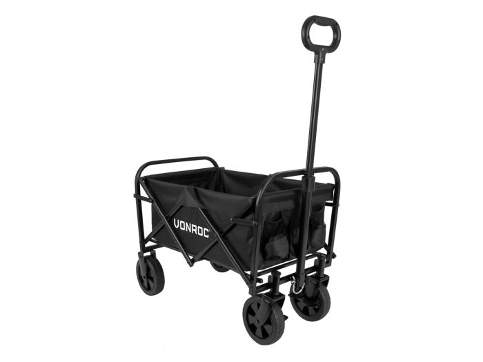 Deze kar is gebouwd om flink wat werk te verzetten. Het sterke stalen frame in combinatie met het duurzame 600D polyester doek maakt ’m robuust, weerbestendig en klaar voor elk avontuur. Met een draagvermogen van 60 kg en een inhoud van 50 liter biedt hij ruim voldoende capaciteit voor een kar van dit formaat – ideaal, want je tilt ’m vaak in z’n geheel gevuld zo de auto in.