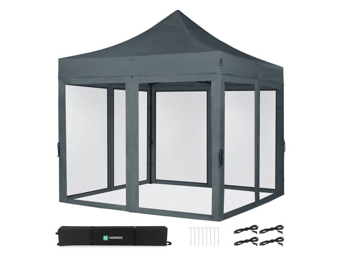 VONROC Premium 3x3 partytent met muggennet wanden - Grey