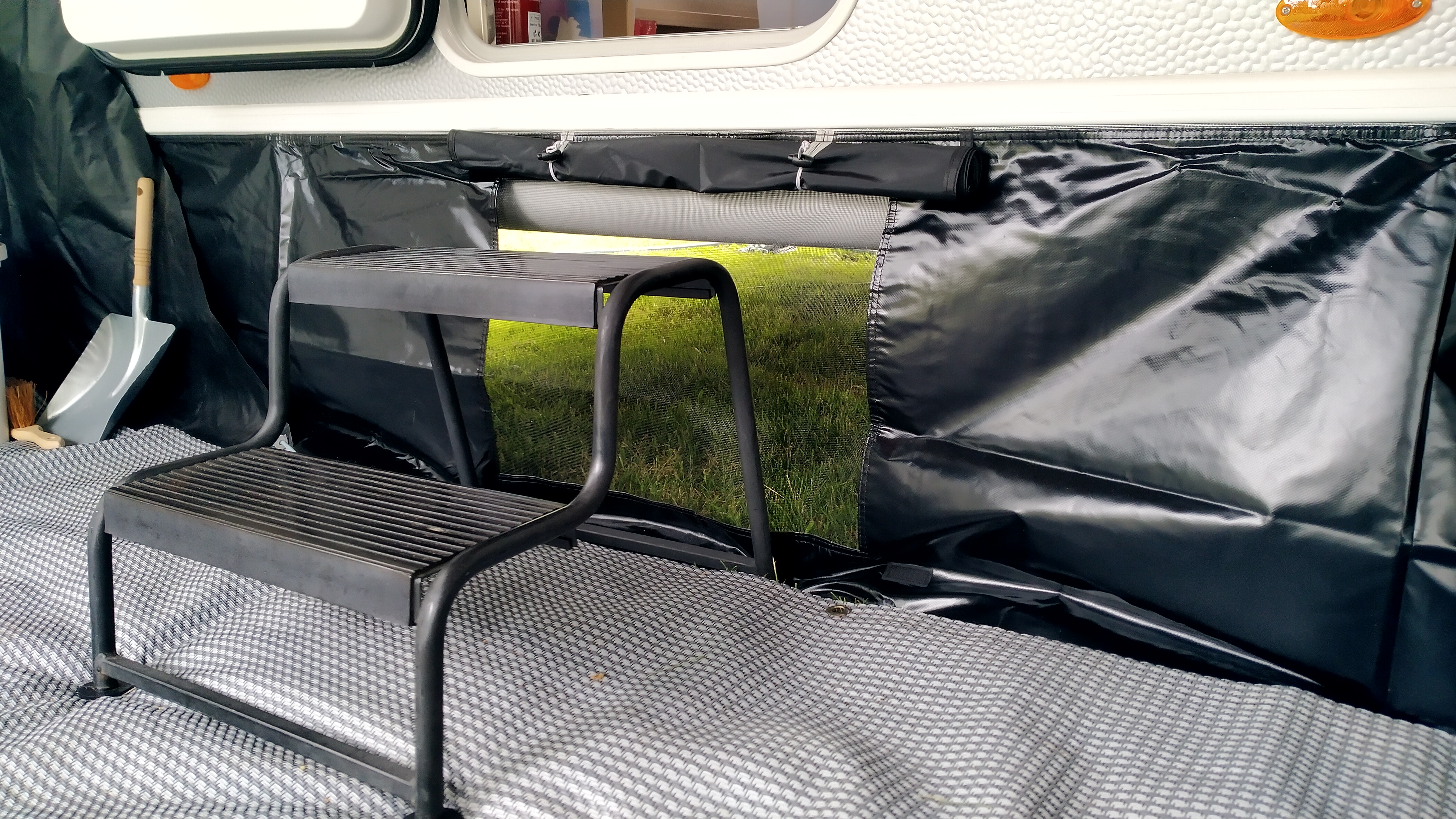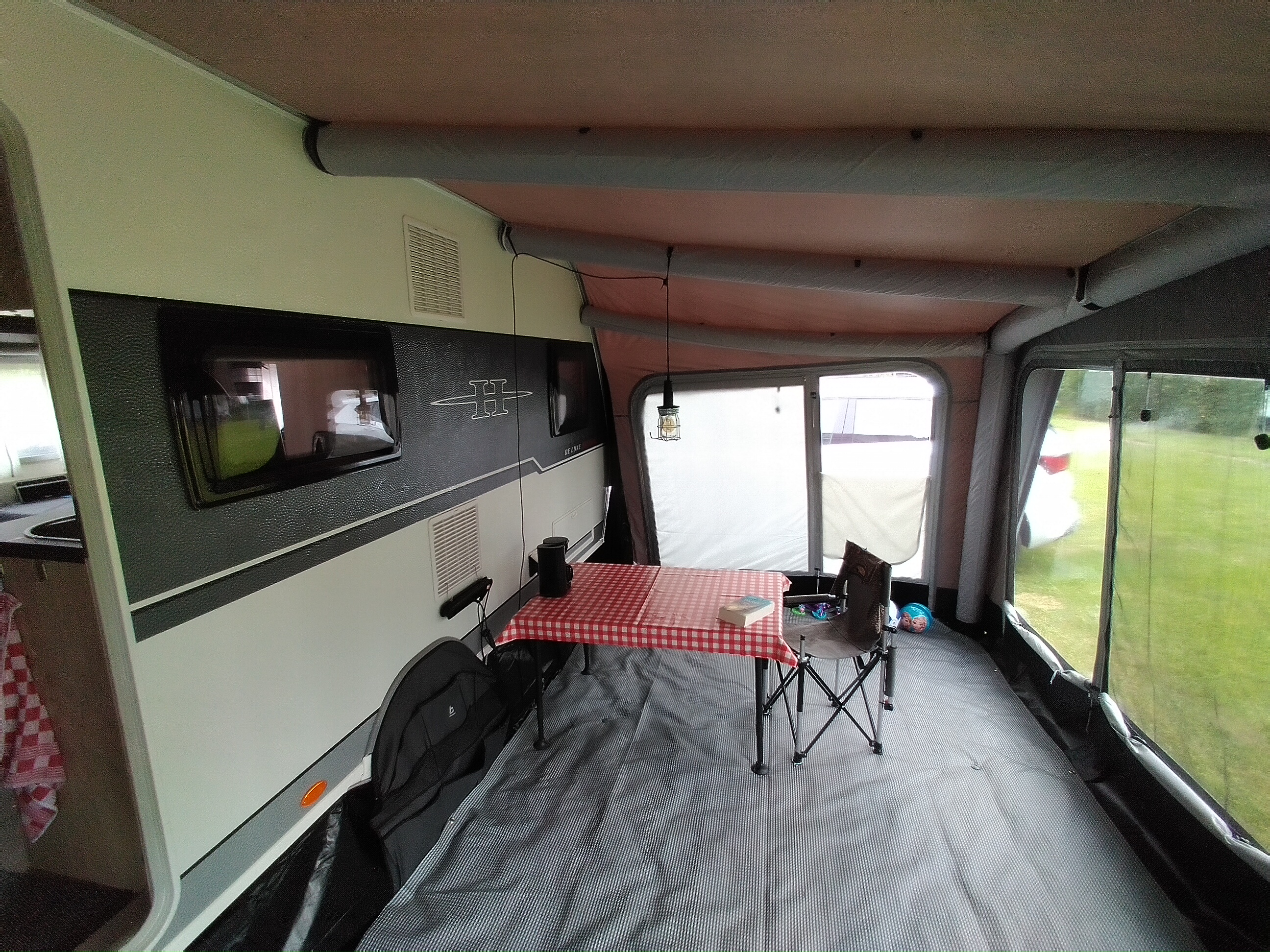 Een petluifel is een dakoverstek die je bij de meeste traditionele caravanvoortenten tegenkomt.