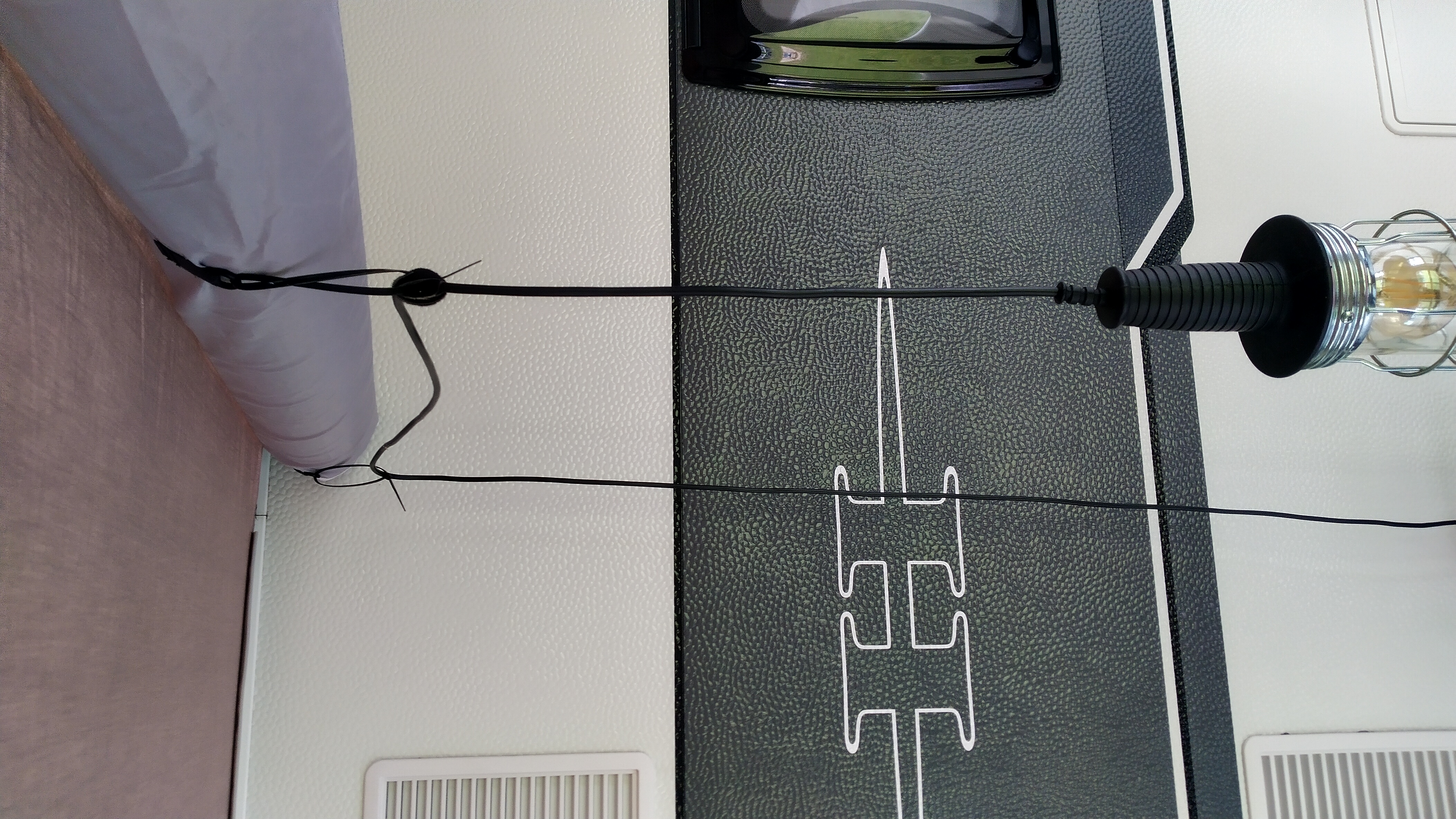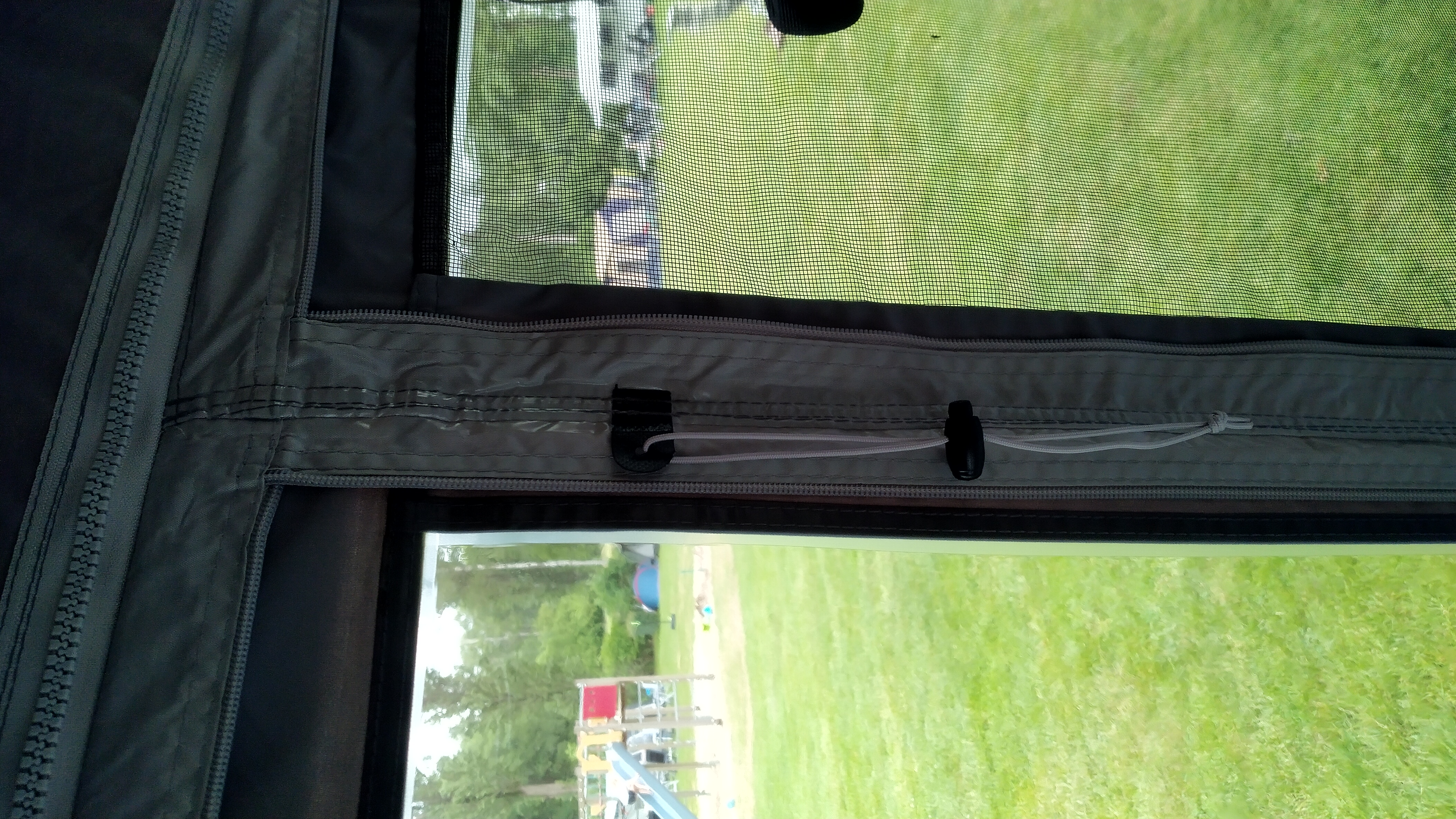 Dit is een koord aan de pees voor de bevestiging van (optionele) clips waar je dakliggers in kunt haken. Door dit koord hoef je geen ogen op de caravanwand te schroeven om dakliggers te gebruiken.