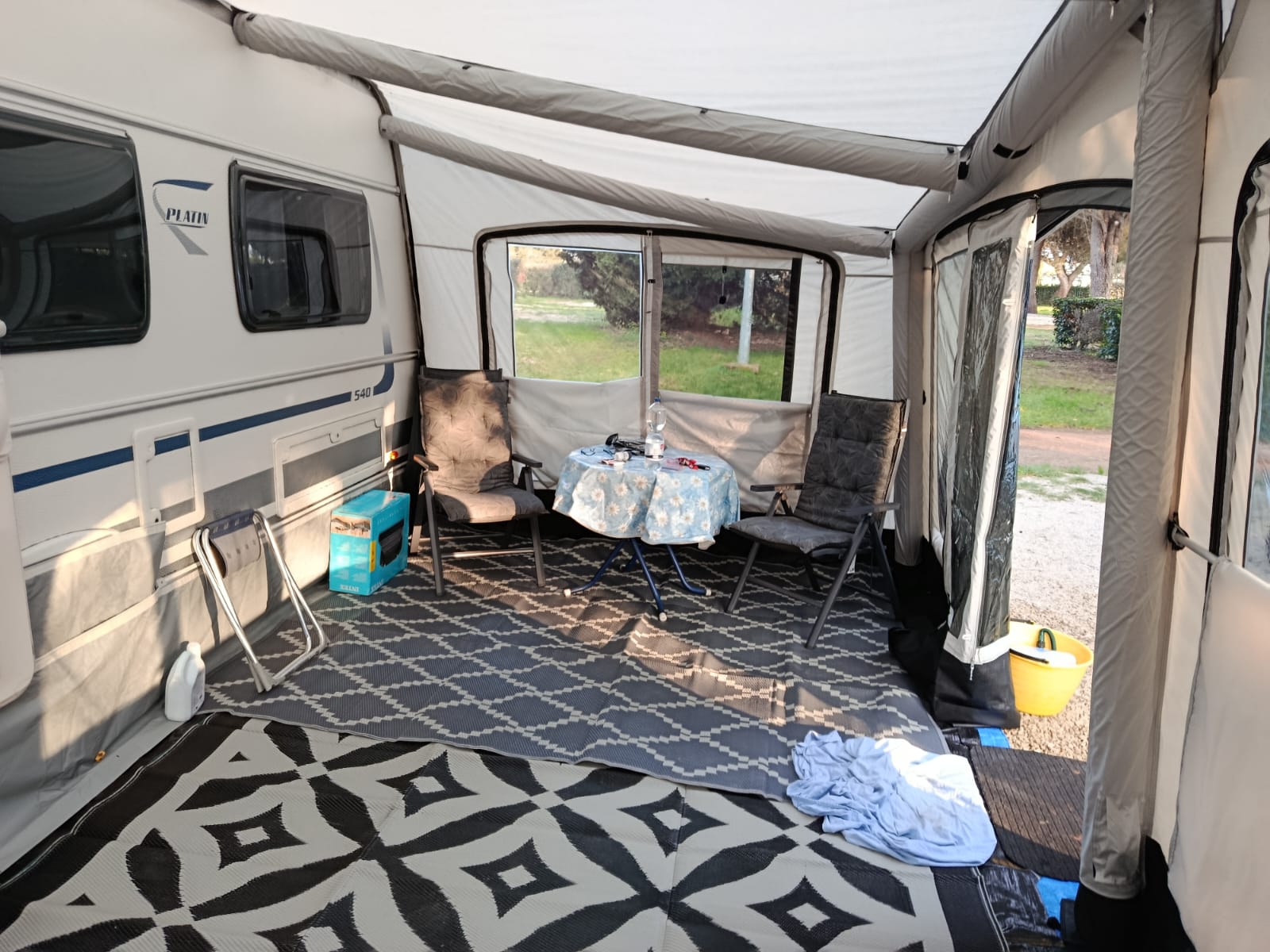 Draagtas, Handpomp, Haringen, Tochtstrook, Rechte wielflap voor enkelassige caravan, Spanbanden, Verandastang, Afspanrubbers